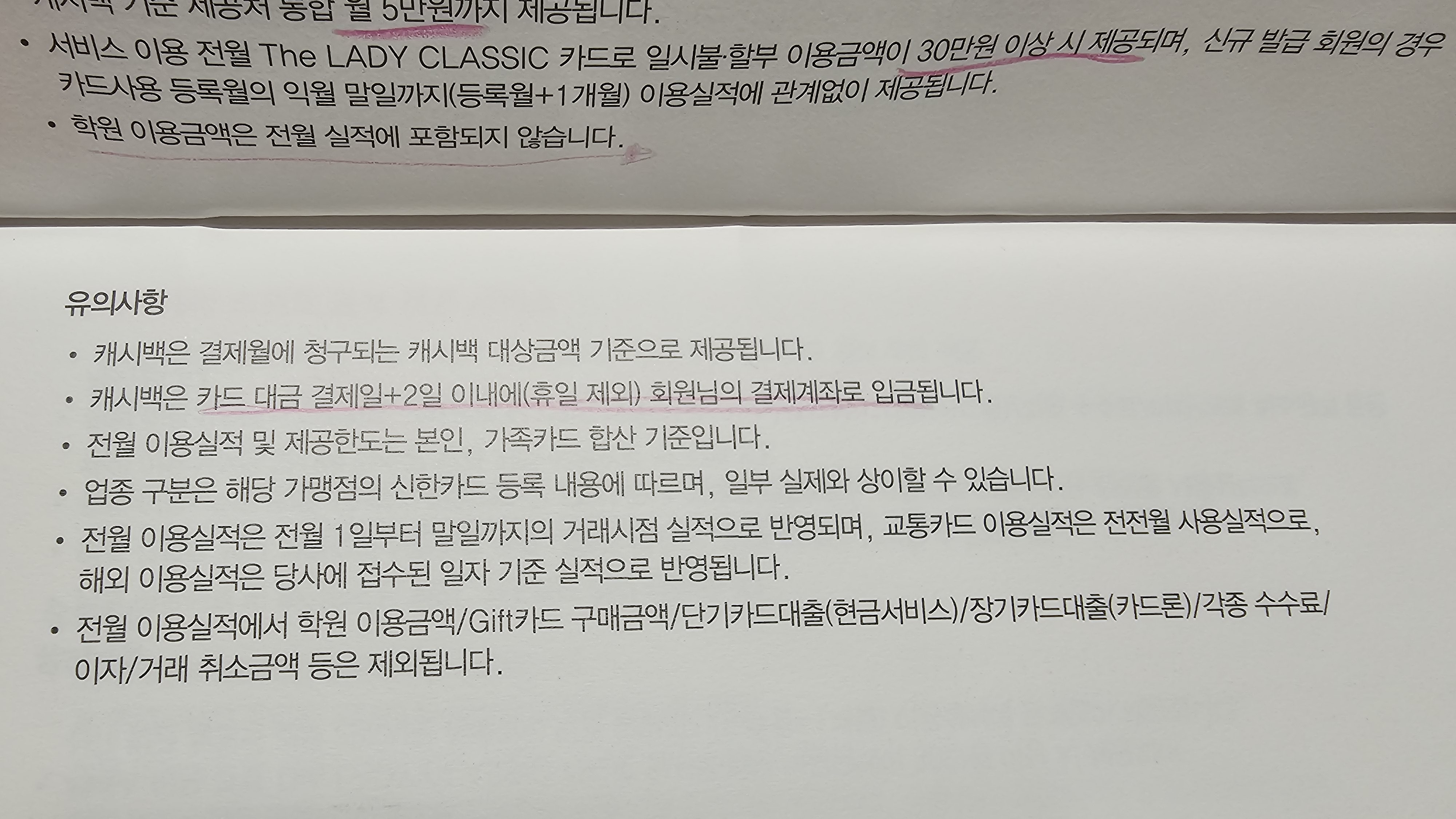 신한 레이디 클래식 카드 혜택 정리.